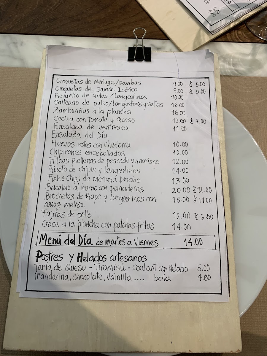 Restaurante Buena Sombra offers a delightful selection of dishes for both lunch and dinner, with a variety of options to please different tastes. For starters, their Croquetas are a popular choice, available in Jamon Iberico, Merluza y Gambas (price not specified), and Mejillones. Additionally, their Chipirones Encebollados and Salteado Pulpo, Langostinos y Setas offer a flavorful mix of seafood and vegetables. For a heartier option, try the Fajitas de Pollo or the Risotto de Langostinos y Chipirones, which showcase rich, savory flavors. When it comes to desserts, guests can indulge in the Tarta de Queso Cremosa, a creamy cheesecake; the classic Tiramisu; or the decadent Coulant de Chocolate. This menu features a wonderful range of dishes, combining traditional Spanish flavors with a touch of creativity, making it a great choice for any occasion.